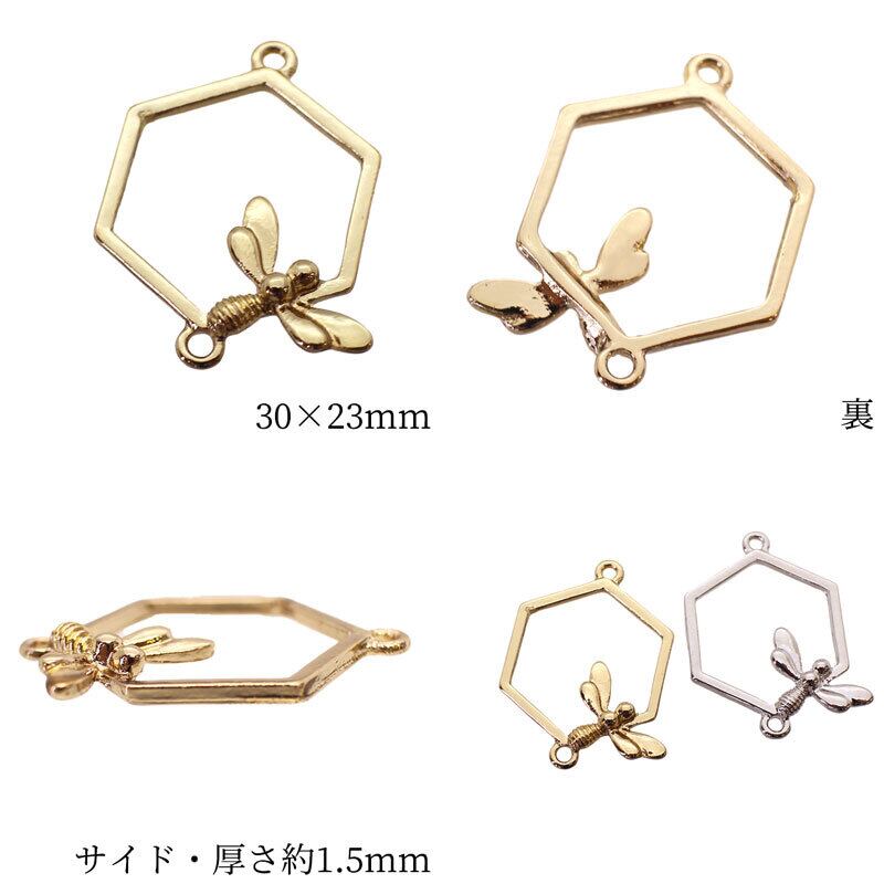 チャーム,キーホルダー,ペンダント,蜂,虫,昆虫,動物,六角形,ゴールド,シルバー,金,銀,アクセサリー,パーツ,アクセサリーパーツ,ハンドメイド,アレンジ,手芸,材料,金具,部品,カラワク,空枠,ミール皿,レジン,アート,飾り,装飾,創作,自作,加工,手作り,クラフト,工作,デコレーション,作家,デザイナー,クリエイター,オリジナル,DIY,問屋,卸売り,セット,まとめ買い,まとめ売り,お得,激安,特価